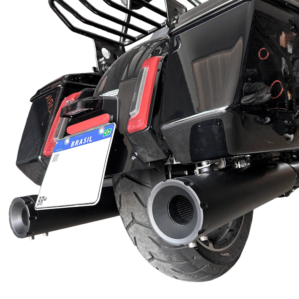 A Ponteira : Seu acabamento já fala por si próprio a ponteira trata-se de uma linha premium produzida com materiais resistentes e robustos com bocais CNC, tendo o mesmo sistema de fixação da ponteira original para maior facilidade na hora da instalação, e também acompanhando abafadores removíveis e kit fixação.